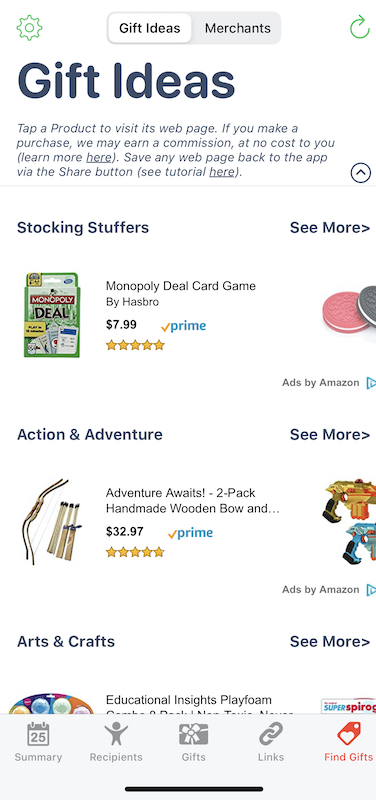 Giftry – this app is more of a year-round gift planner; can select favorite stores and enter or search for possible gifts
